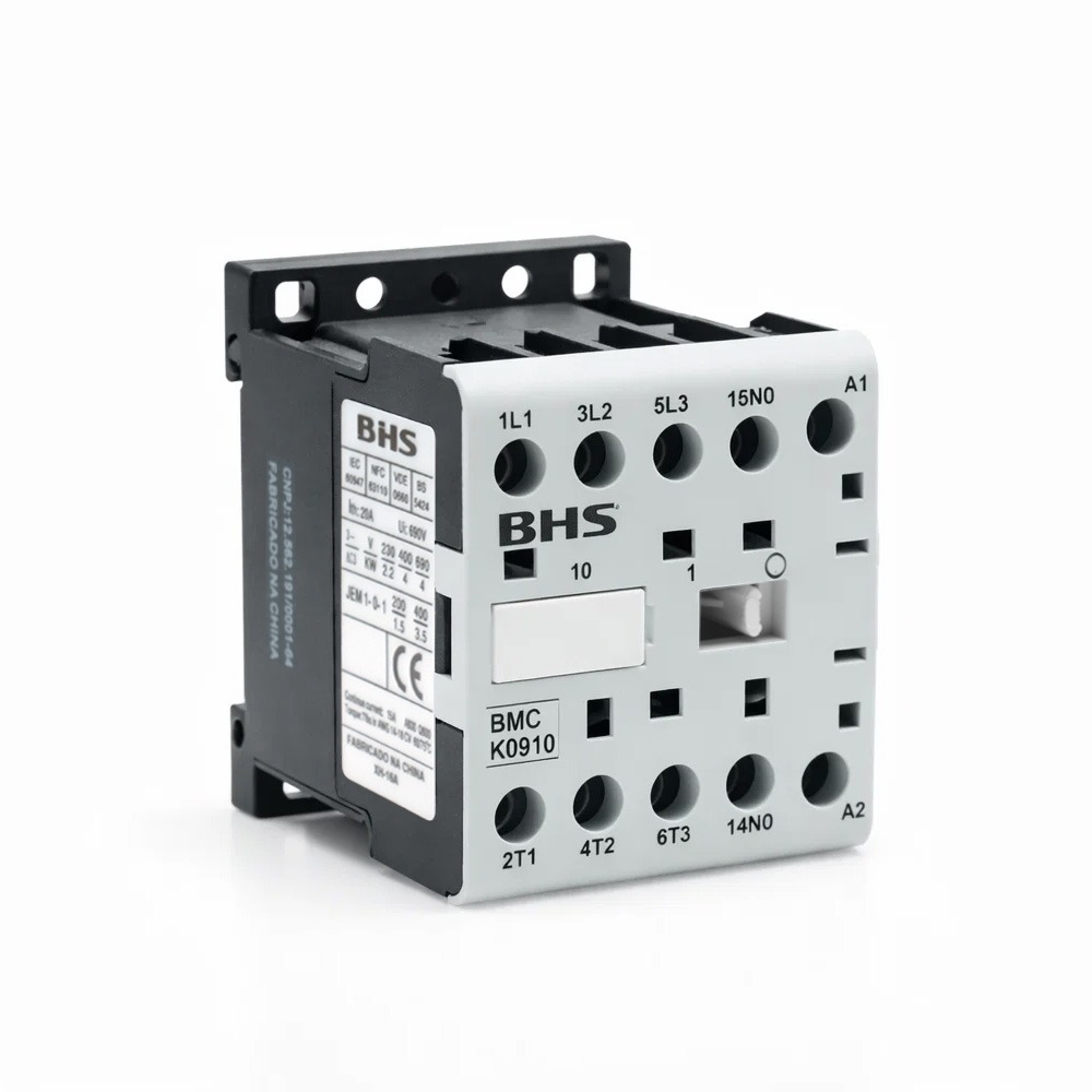 O Contator BMC é um dispositivo de manobra de baixa tensão, projetado para comando de motores elétricos trifásicos ou monofásicos de pequenas potências em corrente alternada (50/60 Hz) ou corrente contínua. Com dimensões reduzidas, é ideal para aplicações em que espaço é limitado. As características técnicas incluem corrente nominal de operação de 6A, corrente térmica convencional de 12A e capacidade nominal de fechamento de 110A. O contator é compatível com tensões de comando em corrente alternada de 24, 110, 220 e 380Vca, e em corrente contínua de 24Vcc. Além disso, é certificado conforme as normas ABNT, IEC e VDE, garantindo segurança e confiabilidade em suas aplicações.